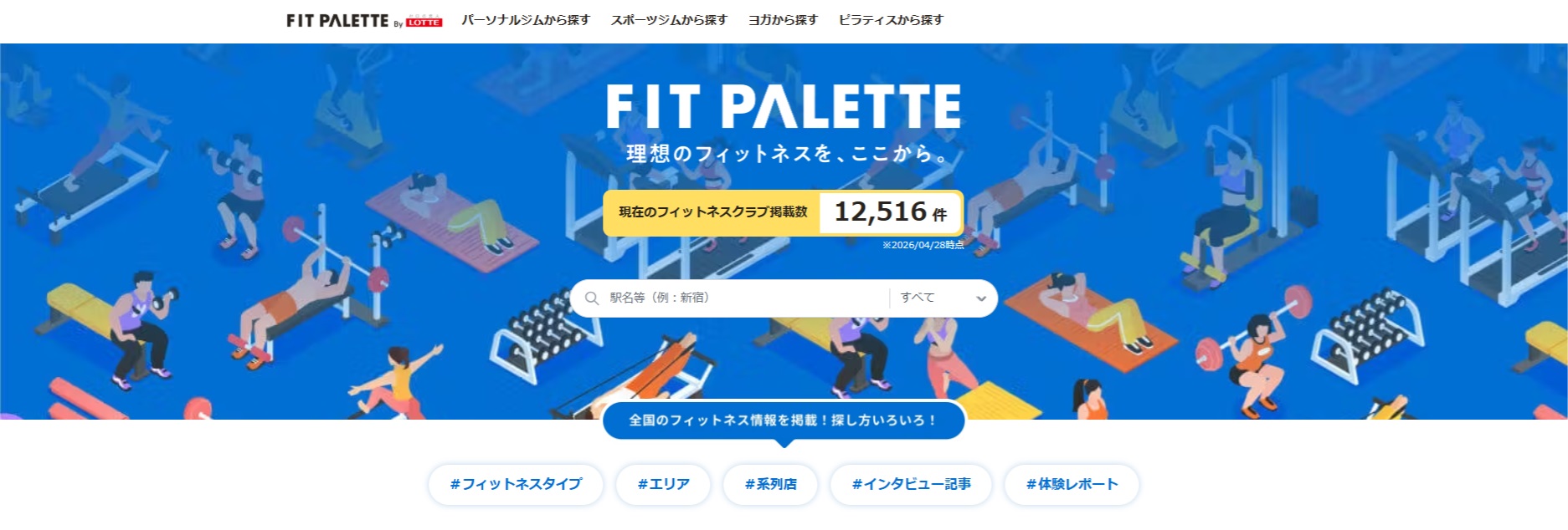 スポーツジム・ピラティススタジオ、全国のフィットネス情報を掲載! | FIT PALLETTE リンク先:https://fitpalette.lotte.co.jp/